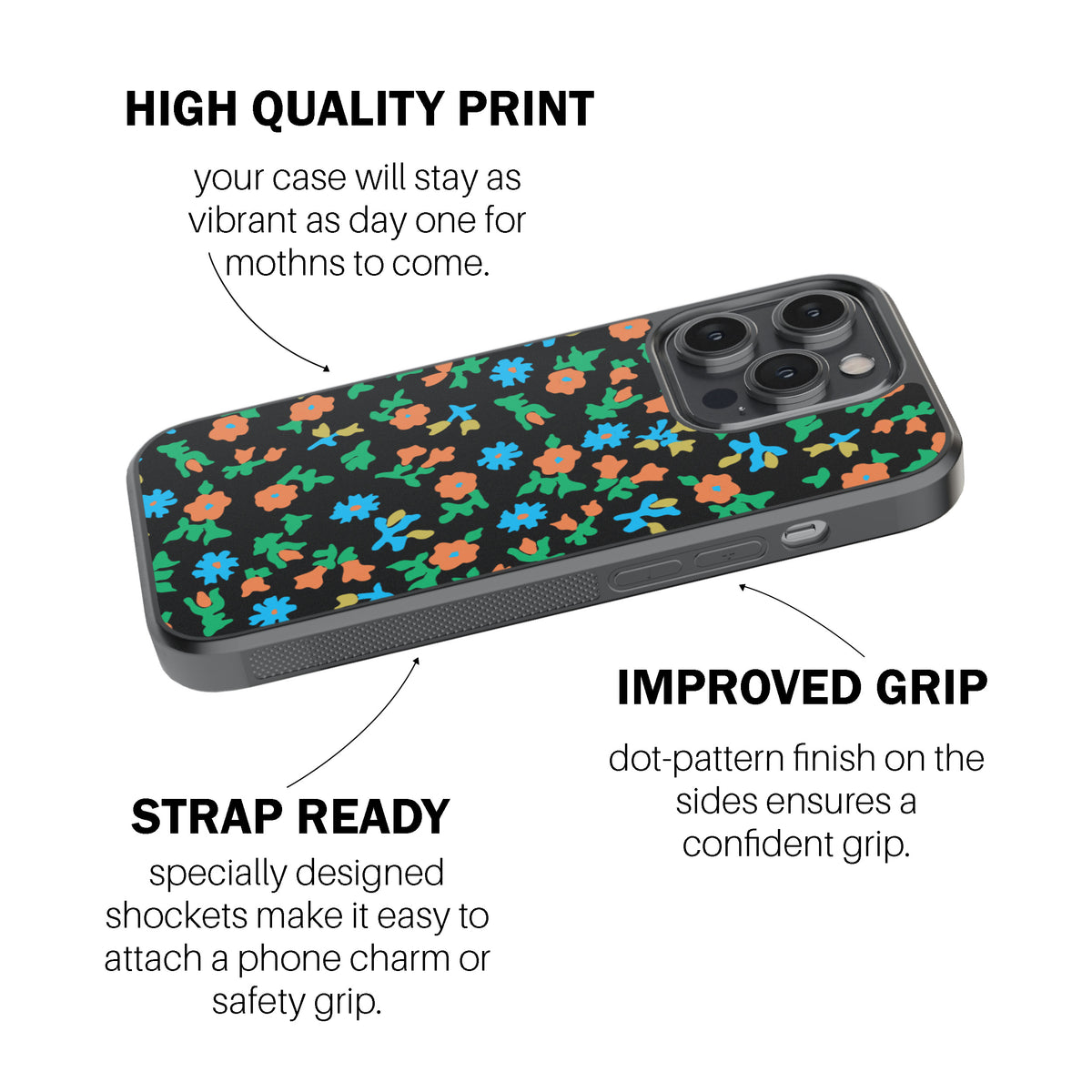 Black Calico Floral Phone Cover