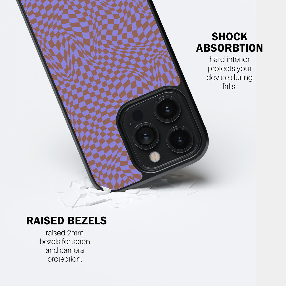 A groovy lavender checkerboard with a hypnotic twist — retro, fun, and full of attitude.
