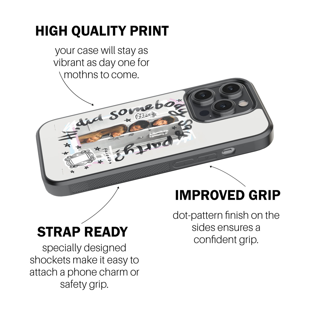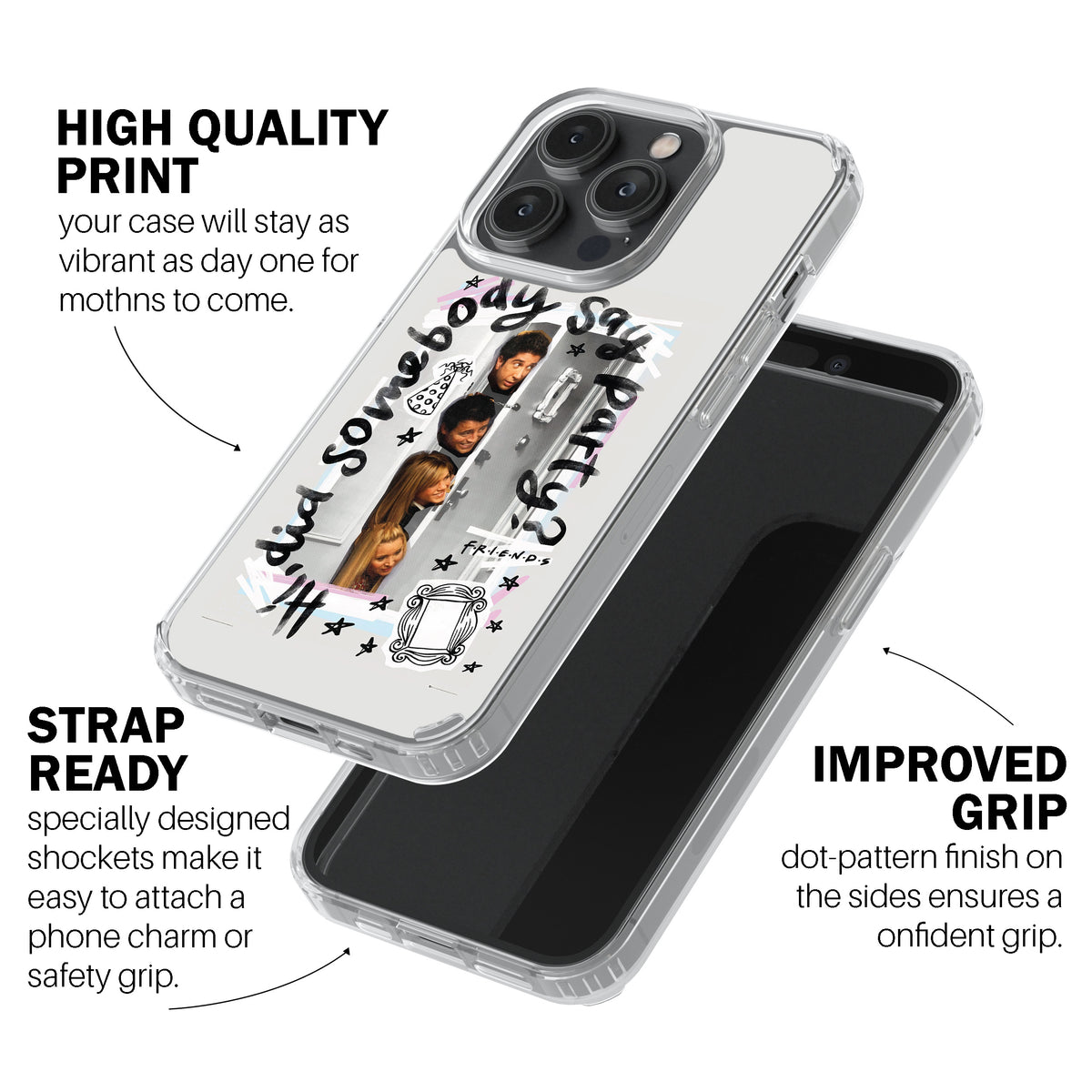 A quirky and fun cover featuring candid FRIENDS moments and the iconic party quote—ideal for the life of the party.