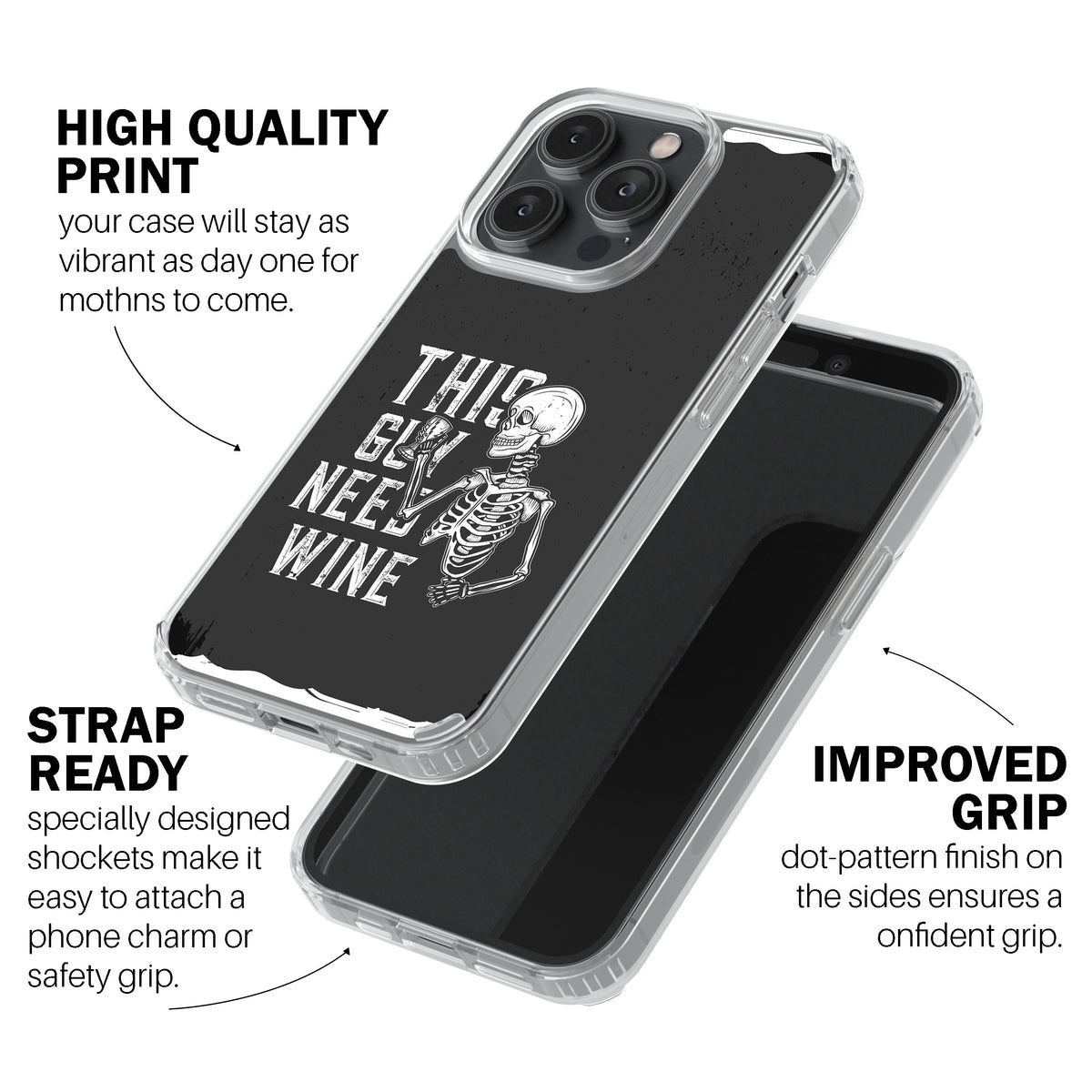 Funny skeleton holding a wine glass for wine lovers – phone cover